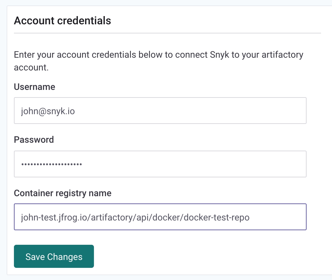 자체 호스팅된 Artifactory 인스턴스를 사용 중인 경우 Snyk Broker - 컨테이너 레지스트리 에이전트를 참조하십시오.